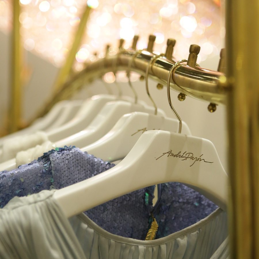 As gorgeous as his evening wear is, it’s his boutique that impressed me the most. Stepping into Andrés Pajón‘s two-story building (the boutique is on the ground floor and his office on the second) kind of made me feel like Alice from Alice in Wonderland. Leave it to me to throw in a Disney reference in there, right? While the streets of Medellín are magical in their own right, there’s something transformative about Pajón’s designs, and thus the entire space they occupy. Most customers make an appointment beforehand so that they get one-on-one fashion advice from Pajón and his team. After all, special occasions call for extra measures!
