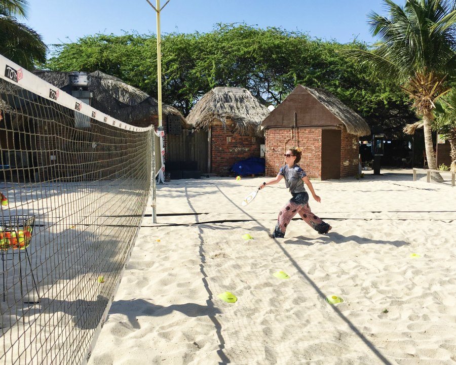 You might be surprised (as I was), that Aruba has their own form of tennis. From a glance, it mostly looks the same. There are racquets and a net BUT beyond that, it’s a whole new ballgame (literally)! In a nutshell, Aruba’s signature sport of beach tennis is a mix of three worlds: tennis, volleyball, and badminton. Scoring is also similar to tennis, with milestones like 15 – 30 – 40 and no-ad at deuce.